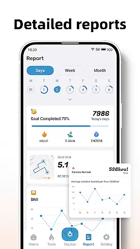 Users can access professional-grade tools such as BMI calculation and tracking, GPS-enabled activity mapping, and structured training programs. The reporting system generates comprehensive visualizations of activity data across daily, weekly, and monthly periods, helping users identify trends and measure progress in their fitness routines.