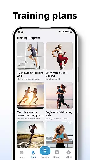 The app provides various training modes, such as a 10-minute jogging plan, which users can select based on their preferences or fitness goals. These plans are not only about counting steps but also include tracking active time, distance covered, and calories burned during each session.