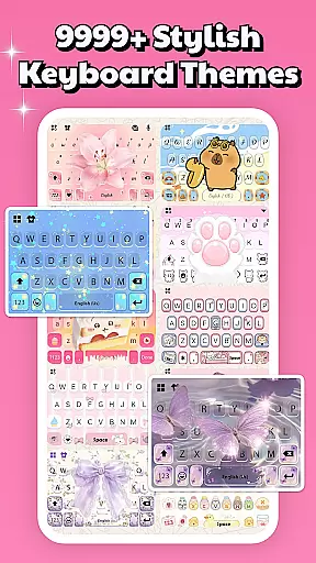 The keyboard customization options are exceptional, featuring daily updated themes across various categories such as anime, cute animals, nature, and more. Each theme is carefully designed to cater to different user preferences, from minimalist aesthetics to vibrant designs.