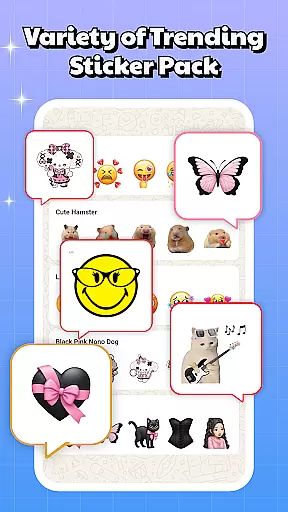 Additional features include diverse background options for device personalization and a vast collection of stickers covering multiple styles and moods. The app maintains its value proposition through regular updates with trending content, ensuring users always have fresh material for their conversations.