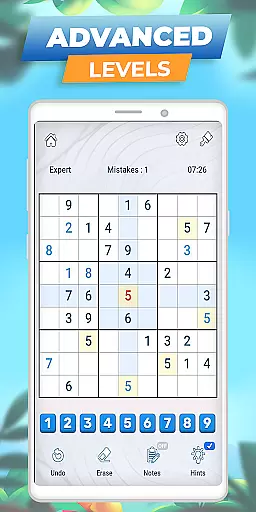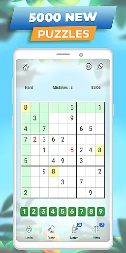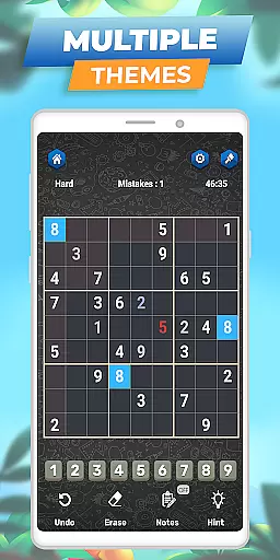 This Sudoku app stands out with its comprehensive feature set tailored for an optimal puzzle-solving experience. The game includes essential tools such as Notes Mode, Highlight Duplicates, and the ability to highlight rows, columns, and boxes related to the selected cell. These features help players avoid mistakes and improve their solving strategies. Additionally, the inclusion of an eraser tool allows users to easily correct errors in their free Sudoku games.
