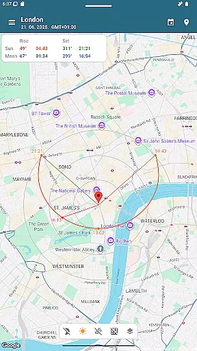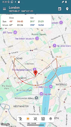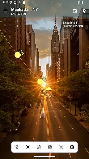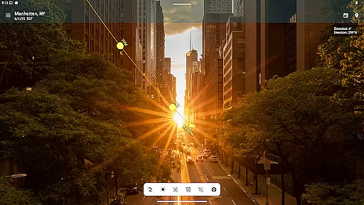 One of the key highlights is the interactive sun path map that shows the complete solar arc throughout the day. This feature, combined with the AR camera view, allows users to visualize exact celestial positions and plan their activities accordingly.