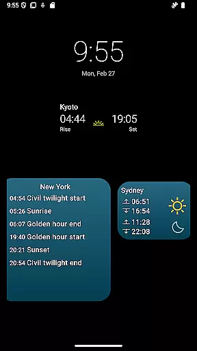 Additional functionality includes a convenient sunrise/sunset widget for quick access to daily information, making it invaluable for photographers, campers, sailors, and solar energy professionals who rely on accurate sunlight data.