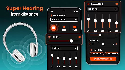 The application supports both wired and Bluetooth headphones, providing versatile usage options. Its sophisticated features include an adjustable equalizer for personalized sound quality, microphone selection for optimal audio capture, and noise reduction capabilities that ensure clear hearing even in challenging environments. Whether you need to focus on specific conversations or require general sound enhancement, this app delivers exceptional performance.