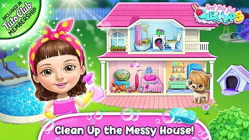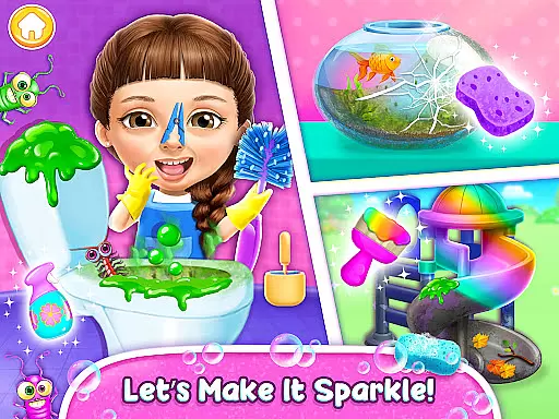 Sweet Baby Girl Cleanup 5 is an engaging educational game designed to teach children essential life skills through fun and interactive house cleaning and pet care activities. The app features a variety of cleaning tasks, including kitchen cleanup, bathroom tidying, and dishwashing, alongside exciting playground design options.