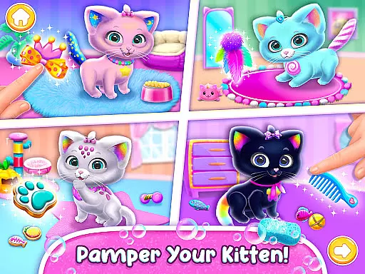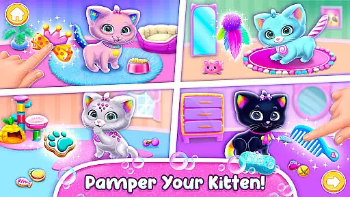 One standout feature is the introduction of a virtual pet kitty that players can feed, dress up, and care for by renewing its cat tower with new toys. This element not only enhances creativity but also instills a sense of responsibility in young users. With numerous customization options for both the baby girl's appearance and her environment, this app offers countless hours of productive entertainment.