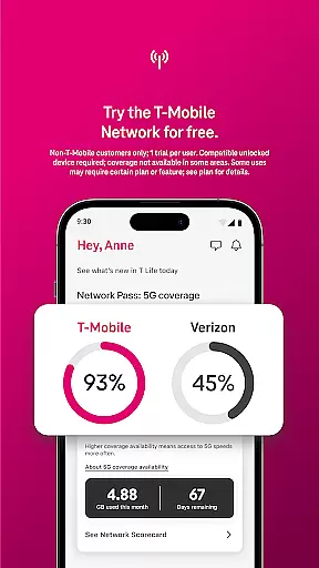 Another significant feature is the access to exclusive benefits. Users can enjoy offerings like Netflix On Us, travel and dining savings, and participate in T-Mobile Tuesdays for a chance to win exciting prizes. For those considering a switch to T-Mobile, the app provides a 30-day free trial of America’s Best Network, showcasing the network's capabilities. This trial is subject to change and available exclusively to non-T-Mobile customers, requiring a compatible device for access.