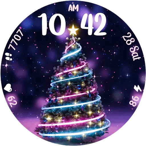 Neon Christmas Tree Animated: Festive Wear OS watch face with fitness info