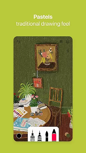 Each tool within the application has been meticulously crafted to mimic real-world counterparts. The watercolor wet brush, for instance, provides an incredibly lifelike experience that adapts to the user's movements in terms of pressure, angle, and width, making each stroke vividly resemble traditional painting techniques.
