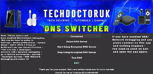 Another notable feature is the requirement of USB or Network Debugging activation, which ensures that only authorized users can modify DNS settings. This adds an extra layer of security, preventing unauthorized access to critical network configurations. Overall, these features make TDUK DNS Switcher a powerful tool for maintaining a secure and private internet connection on your Android TV.