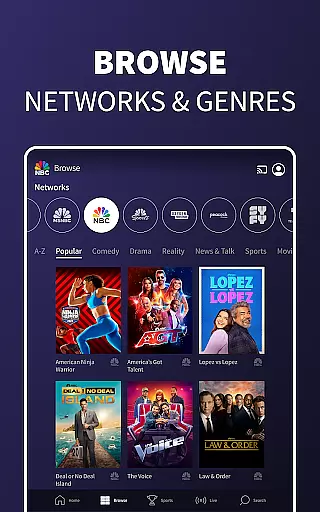 The NBC App is your ultimate entertainment companion, offering a comprehensive streaming platform for live TV and on-demand content. With this app, users can access a wide selection of NBC's primetime shows, classic series, news broadcasts, and content from affiliated networks like Bravo, E!, and SYFY. Whether you're at home or on the go, the NBC App ensures you never miss an episode of your favorite programs.
