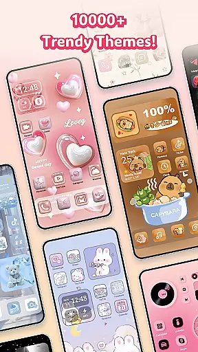The app's DIY icon feature allows users to customize app icons with various styles, fonts, colors, and transparency levels. This level of customization extends to wallpapers and themes, with options ranging from neon and K-pop to seasonal designs like Christmas and Halloween. Regular updates ensure fresh content, while the intuitive interface enables easy navigation and quick personalization.
