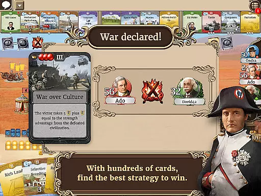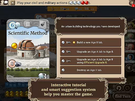 The digital adaptation preserves the complex card-driven mechanics and turn-based strategies of the original, offering players endless possibilities to develop their civilizations. With a pool of hundreds of cards, each game is unique, allowing for countless strategic options on what actions to take and how to play.