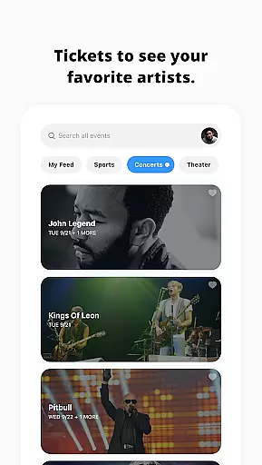 Find tickets to upcoming concerts, sports events, festivals, shows, attractions