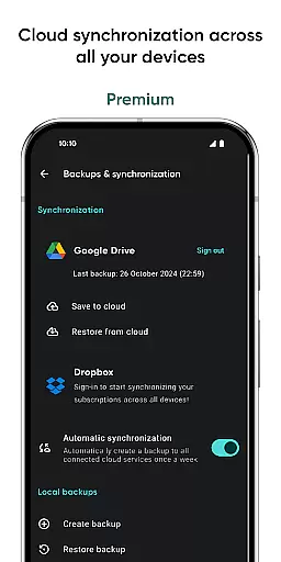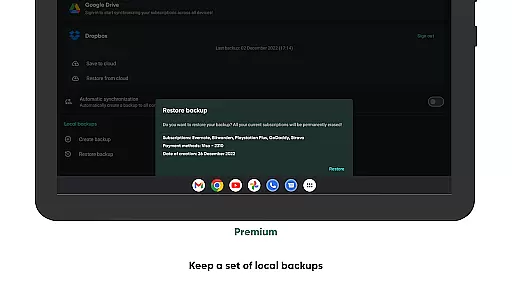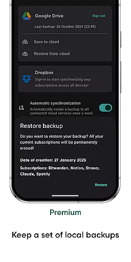 The app provides detailed insights into monthly spending through its analytics feature, helping users optimize their expenses. With cloud synchronization, users can access their subscription data across multiple devices seamlessly.