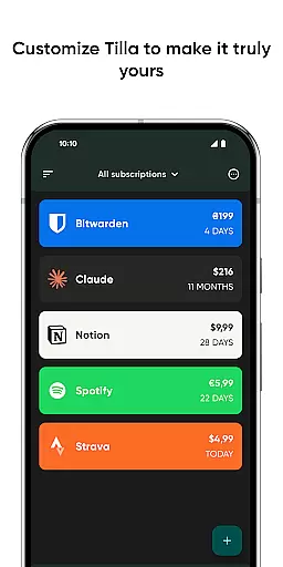 With its intuitive interface, Tilla allows users to easily add subscriptions from a pre-populated list or create custom entries. The app offers a clear overview of monthly expenses and upcoming payments, empowering users to maintain better control over their finances.