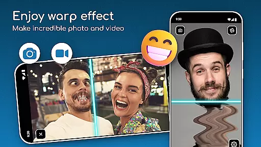 One of the app's most notable aspects is its user-friendly interface that allows quick switching between horizontal and vertical scan directions. The Warp Camera system includes specialized modes like Face Freeze, which enables users to experiment with static elements within moving scenes. The app also implements various Funny Face Filters that automatically detect and modify facial features, making it easy to create entertaining content.