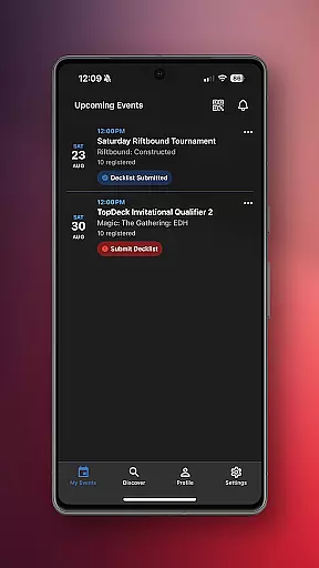 The app also excels in discovery tools, helping users find both nearby local events and larger-scale competitions. Push notifications further enhance user experience by delivering timely reminders about round starts, seating changes, and official announcements. These features collectively ensure that no detail is overlooked, empowering users to focus on their gameplay while TopDeck.gg manages the rest.
