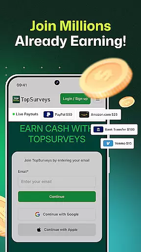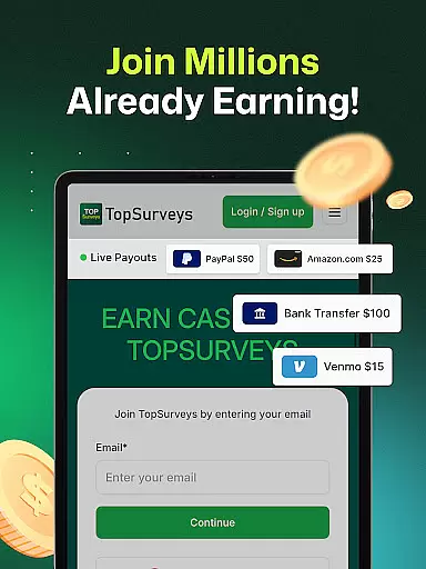 TopSurveys is a lifestyle app designed to help users convert their free time into tangible rewards. The core functionality revolves around completing surveys, playing games, and earning instant payouts via PayPal or gift cards. Unlike many survey platforms, TopSurveys minimizes unnecessary disqualifications, ensuring users can complete more surveys without wasting time. This makes it ideal for anyone looking to earn money effortlessly during their spare time.
