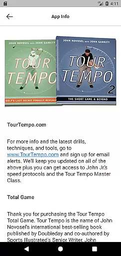 Additional features include integration with educational resources such as instructional videos and supplementary websites (tourtempospeed.com and tourtempo.com). Users can access social media channels for ongoing support and community engagement. The app's comprehensive approach combines physical training with mental preparation, creating a complete golf improvement solution.