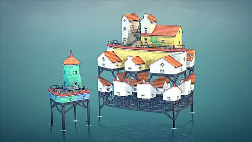 The application's algorithm automatically transforms colored blocks into beautiful structures such as houses, arches, stairways, bridges, and lush backyards based on their placement. This innovative approach makes Townscaper more of an interactive toy than a traditional game, appealing to those who enjoy artistic expression and experimentation in a digital environment.