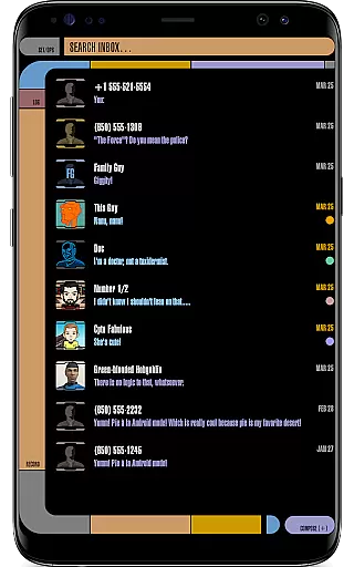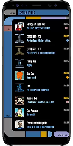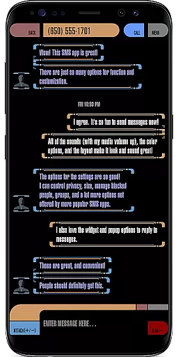 The app stands out with its comprehensive set of communication tools wrapped in an unconventional visual package. TREK: T.I. SMS provides advanced functionalities such as detailed security settings that let you control what's displayed and who is blocked, alongside practical options like dual SIM support for users with multiple carriers.