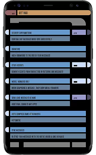 TREK: T.I. SMS is a feature-rich SMS/MMS texting app that combines functionality with a unique retro-futuristic design aesthetic. The application offers extensive customization options, allowing users to tailor their messaging experience through various settings.