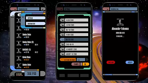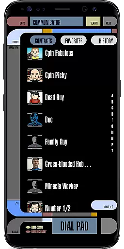 TREK: T.I. Communicator is a unique contacts and dialer app that combines functionality with a retro-futuristic design inspired by sci-fi aesthetics from decades past. The interface cleverly parodies the imaginative yet budget-conscious visions of future technology while maintaining complete usability.