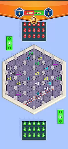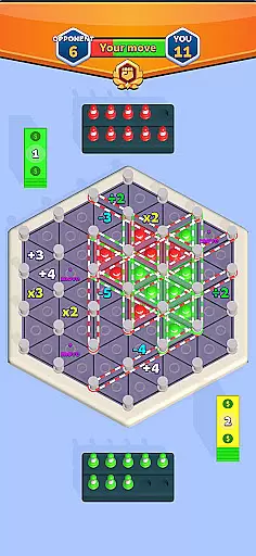 The game employs a unique hexagonal grid system where players must connect nodes exactly three steps apart. This rule is consistently applied, creating a level playing field for all participants. The requirement to form triangles using mathematical operations such as addition, multiplication, subtraction, and division adds another layer of complexity.