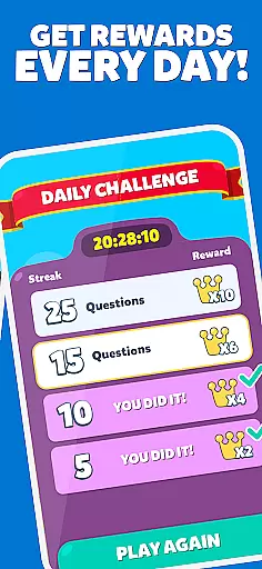 The app's core functionality revolves around answering questions in different categories like history, science, art, and entertainment. Players can participate in solo challenges or compete against others in real-time matches. Its unique feature set includes daily training modes, special events, and team-based competitions that keep users engaged while expanding their knowledge base.