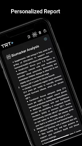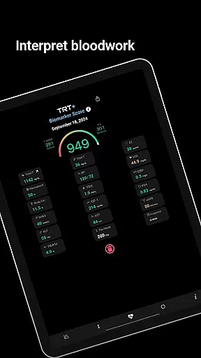 TRT Plus enhances progress visualization through its detailed bloodwork analysis. Users can upload their lab results to receive a color-coded breakdown of their biomarkers, indicating areas that need attention. The app's weighted algorithm scores overall protocol effectiveness, providing a quantitative measure of progress and highlighting potential areas for improvement.