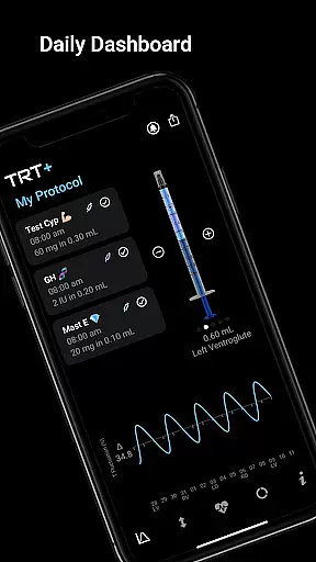 TRT Plus stands out with its robust set of features designed to enhance the TRT experience. One of the key highlights is the protocol tracker, which includes a daily dashboard showing your schedule and checkboxes to mark tasks as complete. This ensures you never miss an important step in your regimen.