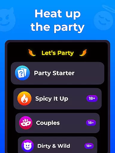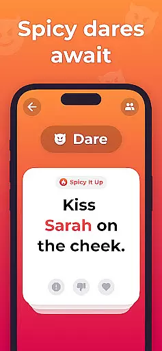 This flexibility extends to customizable truths and dares, empowering players to create their own challenges. Whether you're hosting a casual get-together or looking to spice up date night, the game evolves with your needs. By offering both pre-set categories and the option for personalization, Truth or Dare - Dirty & Spicy caters to a broad spectrum of preferences and comfort levels.
