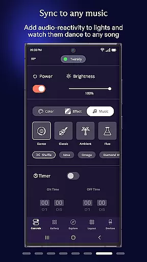 The app also includes practical functionalities such as setting timers and creating playlists for automated lighting schedules. Integration with Amazon Alexa and Google Assistant allows for seamless voice control, enhancing convenience. Moreover, the Twinkly Music feature enables synchronization of lights with audio sources, providing an immersive experience where lights dance to the rhythm of music or ambient sounds.