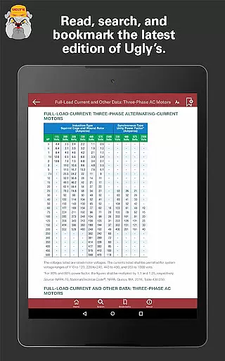 Interactive features such as the conduit fill calculator and NEMA wiring configurations further enhance the precision of the app. By integrating high-definition images and interactive tables that can be zoomed in for detail, the app ensures that every piece of data is clear and accessible. This level of detail supports electricians in making informed decisions on the job.