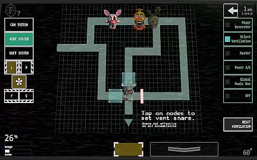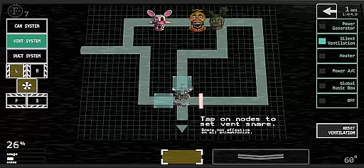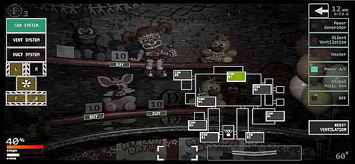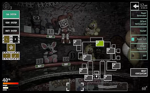 One of the standout features of Ultimate Custom Night is its extensive character selection, allowing players to mix and match any assortment of 50 animatronics. Each character's difficulty can be adjusted between 0-20, offering personalized challenge levels. The game includes a variety of tools and mechanisms such as heaters, air conditioning, and vents, which require strategic management to survive.