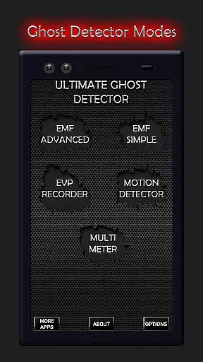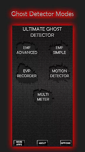 The application features five distinct modes including EMF Advanced and Simple, EVP Recorder, Motion Detector, and Multi Meter. These modes provide users with detailed data analysis through graphs, sounds, and visual indicators. With its customizable interface and additional tools like flashlight and quick-launch camera, this app offers a complete paranormal research suite.