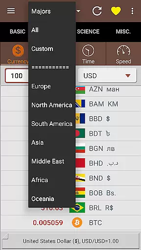 A key highlight is the built-in currency converter that supports real-time exchange rates, including Bitcoin transactions. The app's intelligent system automatically adjusts available units based on the user's geographical location while allowing manual selection of different regions.