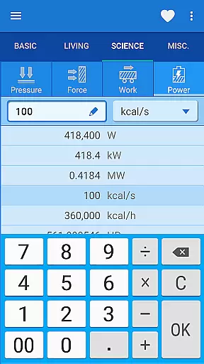 By organizing units into four distinct categoriesu2014Basic, Living, Science, and Misc.u2014the app streamlines the selection process, enabling users to quickly find and convert the units they need. Each category contains subcategories tailored to specific conversion tasks, enhancing overall usability without overwhelming the user with unnecessary options.