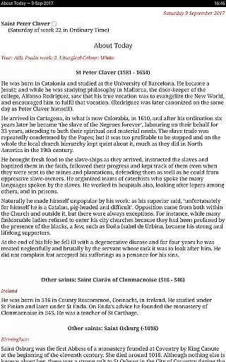 Universalis is a comprehensive Catholic liturgical resource that provides daily readings, prayers, and information based on the General Calendar and various local calendars. It offers users access to Mass readings, Liturgy of the Hours, and detailed 'About Today' pages with saints' biographies.