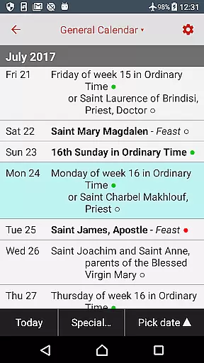 Universalis stands out with its extensive features tailored for Catholic devotion. The app provides feasts and celebrations from multiple local calendars alongside the General Calendar, ensuring relevance across different regions.