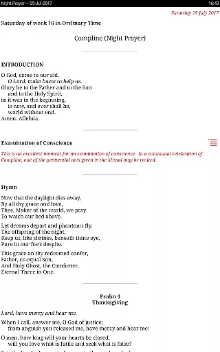 Additionally, Universalis offers optional audio content for certain prayers and readings, further expanding its format compatibility to include spoken word and sung Latin Compline. This multimedia approach caters to different preferences and spiritual practices, making the app a versatile tool for personal devotion and communal worship.