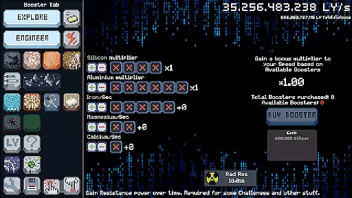 Universe Horizon stands out with its rich feature set tailored for casual gaming enthusiasts. One of its key aspects is the ability to switch between active and idle gameplay modes, allowing players to customize their experience based on how involved they want to be at any given time. The game includes over 16 unique tabs, each offering specialized upgrades that unlock new possibilities for progression. These upgrades are crucial for gathering speed and pushing the boundaries of space travel.
