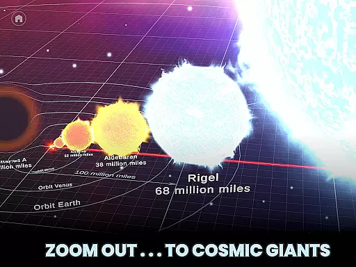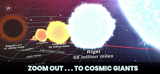 The app not only offers a visual journey but also includes fascinating facts about selected objects, which can be read aloud using Text-to-Speech functionality. Users can compare celestial bodies like the Sun with other stars, or even everyday objects, providing a comprehensive learning tool for curious minds, students, and science enthusiasts alike.
