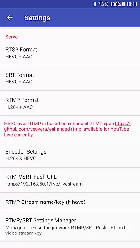 Innovative aspects such as bi-directional audio support when paired with the 'IP Camera' app further distinguish this application. Moreover, its capacity to push media streams simultaneously to multiple servers showcases its robustness for network broadcasting purposes.