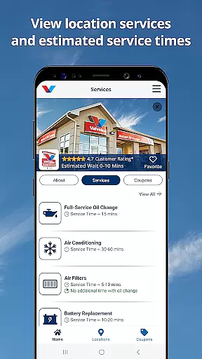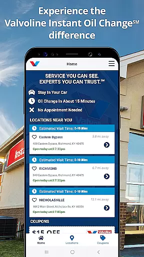Valvoline Instant Oil Change is a mobile application designed to streamline vehicle maintenance for users. The app provides estimated wait times for nearby service locations, allowing customers to plan their visits efficiently. It also offers a range of features including a list of available services, estimated service durations, and personalized coupons, ensuring both time and cost savings.