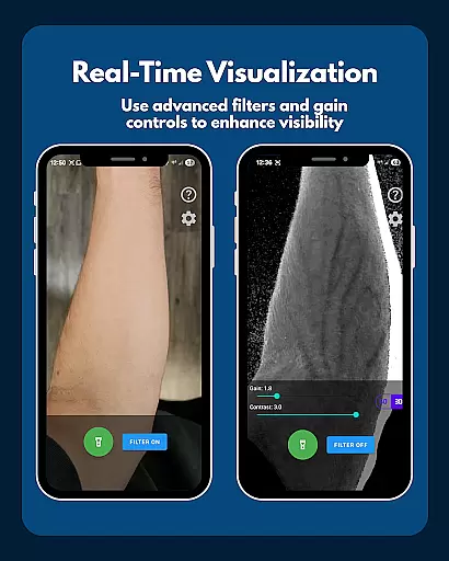 VeinFinder stands out with its sophisticated feature set tailored for medical education. The app's instant comparison function allows users to toggle between enhanced and raw camera views, facilitating better understanding of venous structures. Its precision control options enable fine-tuning of gain and contrast settings, adapting to different skin tones and environmental conditions.