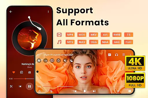 HD Video Player All Format excels in this area by supporting an extensive range of video formats including MKV, MP4, M4V, AVI, MOV, 3GP, FLV, WMV, RMVB, TS, and more. This wide compatibility allows users to enjoy their video content in high definition, whether it's a 4K or 1080p file.