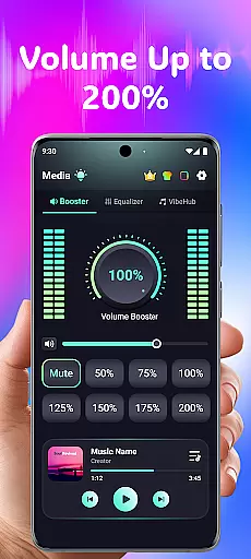 Volume Booster Bass Booster EQ is a versatile audio enhancement application designed to elevate your sound experience across various scenarios. The app's core functionality lies in its ability to amplify media volume up to 200%, making it an ideal solution for outdoor parties, movie watching, and gaming sessions where audio clarity is crucial.