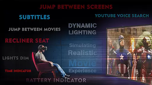 The app stands out with its unique seat selection system, allowing users to choose different viewing angles and distances. Whether you're watching movies or YouTube videos, VR Player Pro enhances immersion with realistic ambient lighting and multiple theatre scenes. The built-in browser with voice search makes online content easily accessible in VR mode.